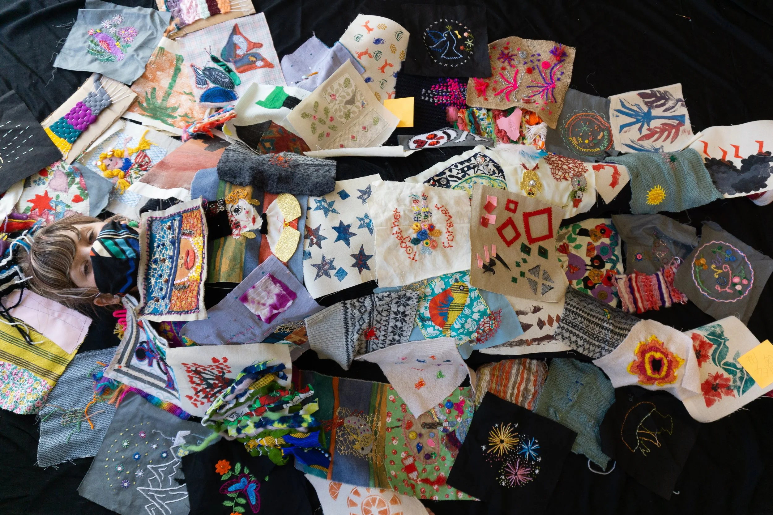 Patched Together brought together over 120 Lewisham residents through creativity even though we had to be apart. The makers wrote each other messages and kept in touch over whatsapp and participated in zoom classes. The skills taught through the kits were: printing, appliqué, weaving, darning, embroidery and embellishment.