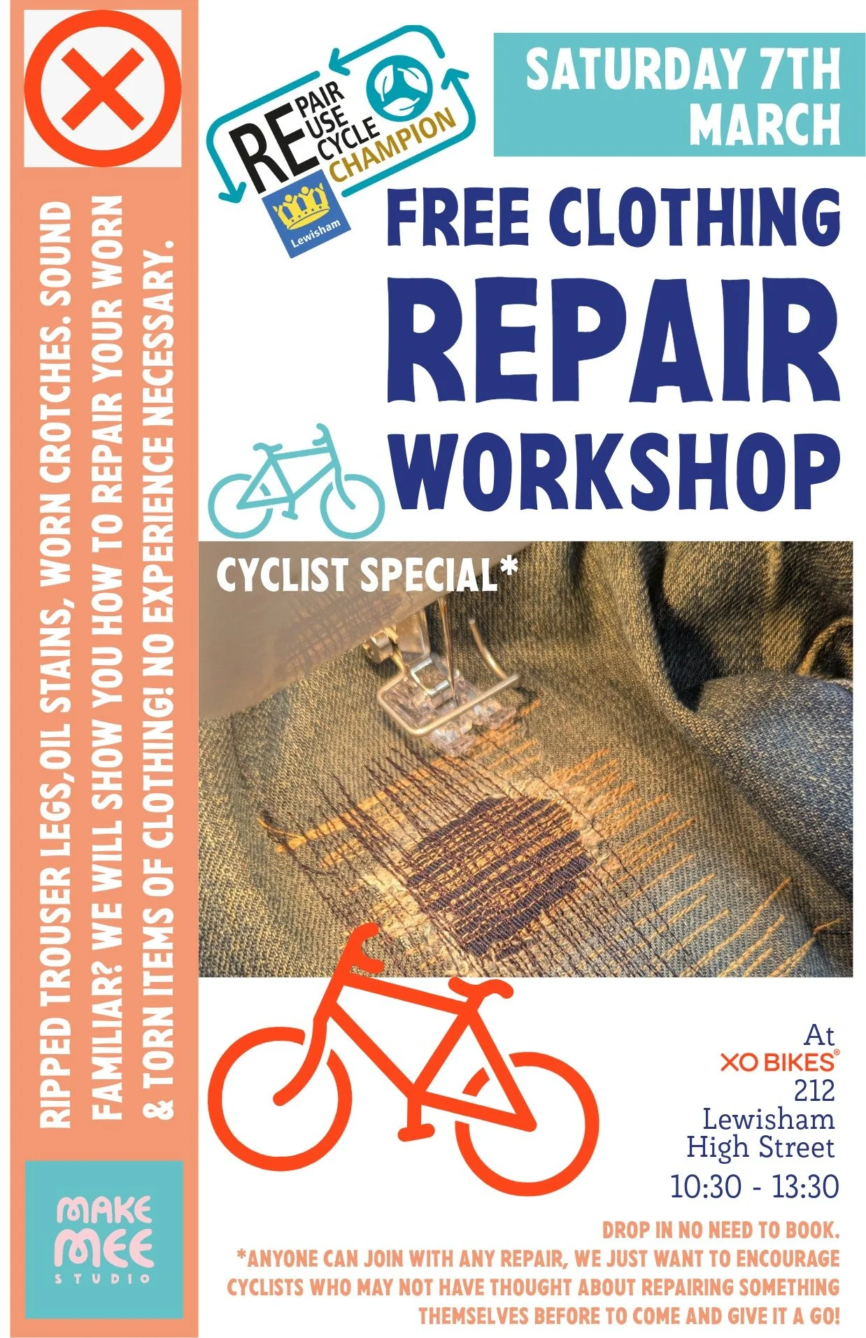 Join Make Mee Studio and Lewisham Council to learn how to prolong the life of your clothes and homewares, whether it's darning a sock or patching a cushion cover we can show you how to mend and repair and bring it back to life.